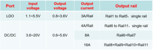 LDO: 3A/Rail (от Rail1 до Rail5);
