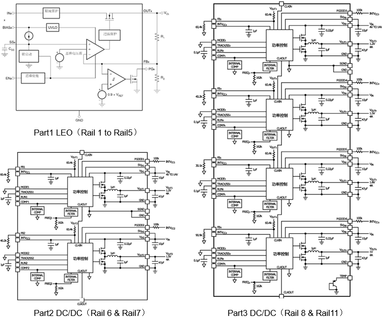 Единовременно поддерживается до 6 выходов DC/DC и 5 LDO, Один чип удовлетворяет потребности в питании для сложных цифровых систем или гибридных систем, уменьшая количество моделей и упрощение конструкций питания.